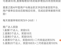 星星之图2026首码来袭 星星之图APP文字变成变现平台,由享学生党,宝妈等通过抖音巨量星图接单(短剧/小程序/手游类)写100字文案,Al审核通过获5星图币(星图币=1元),创作达人得5星图币,普通用户日1任务得1元,宗旨星星之火可以燎原。... 小鹏轻创000327226-02-02719